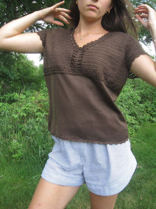 Sold outBrown Knit Delicate Short-Sleeve