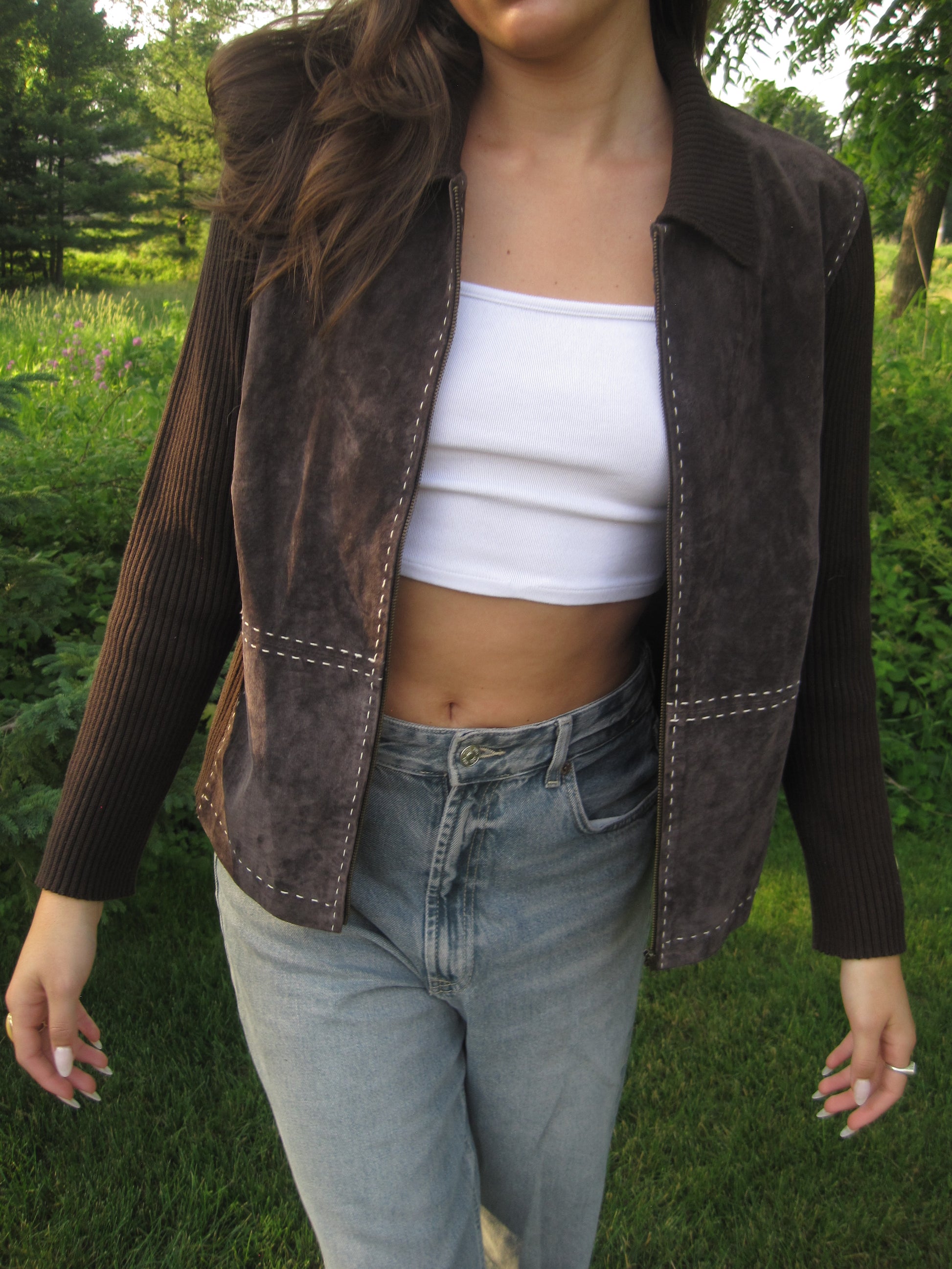 Brown Suede and Ribbed Stitch Jacket