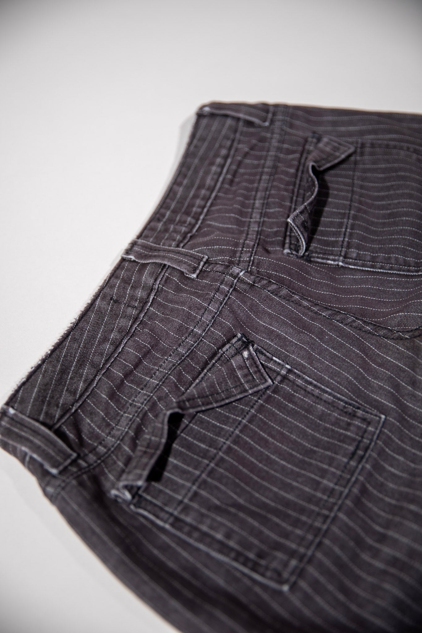 These vintage pin stripe low waisted pants are so 2000s and so in. The faint stripes and distress as so much character. The pockets are everything; mixing utility and femininity! Pair with a crop top and your favorite sneakers or a blouse and stiletto boots. These jeans are the most versatile!