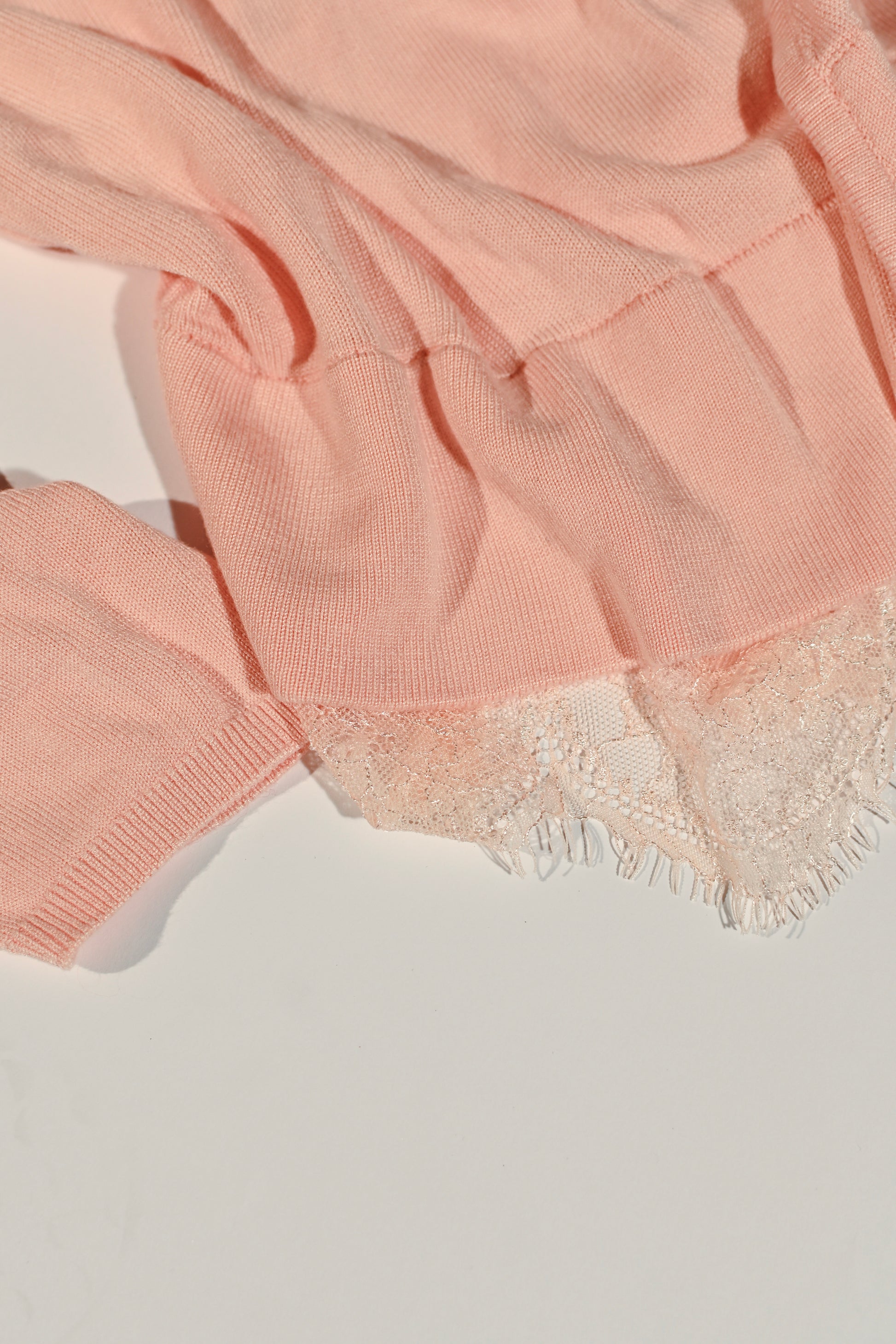 This light pink cardigan is a dainty and comfortable addition to your spring and summer wardrobe. Giving ballet core with lace detail, this cardigan has a comfortable fit while adding a girly touch to your closet.